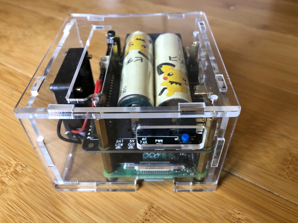The last battery kit I want to mention is sold under various names. When I ordered one, it was branded under GeekPi. While that specific SKU is no longer available, the same unit is available branded from MakerHawk. It is often described as a UPS (Uninterruptible Power Supply). It is the least expensive of the battery kits, costing less than half the price of either of the other two. But it doesn’t have any way for the pi to detect the battery level or a way to have the Pi react to power events. It only provides power and nothing more. Like the X728, one could connect additional batteries in parallel to increase the available energy.