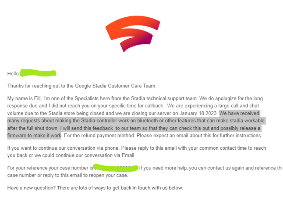 I very much wish that Google would release the source code or some other information so that the community could make the controllers useful. But since they are giving full refunds, I don’t think that they will be doing much more. The only things that people might have lost is their saved games (for games that do not support progress cross play, as Destiny did). According to a post on Reddit, Google did acknowledge the desire for the controllers to remain useful after the shutdown. But no promises were made [src].