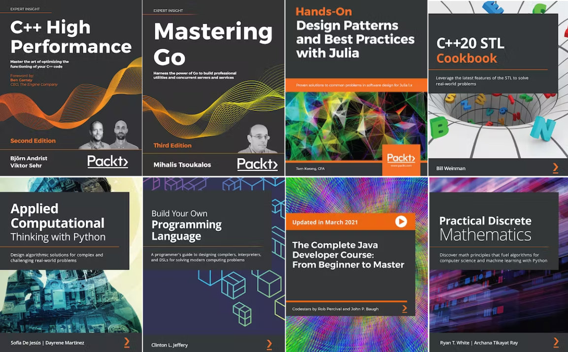 Humble Bundle is known for offering games where you can decide on the price that you pay, and the money goes to a charity. One of the offers that they have available now is for a collection of 27 books from Packt Publishing on software development and related topics. For donating 18 USD the entire collection of 27 books is available. If you donate less than this, then a subset of the books are available to you. For 10 USD, a ten item bundle is available. For 1 USD, a 3 item bundle is available. (Note, the books available for the diminished selections are preselected and cannot be changed). Many of the available books are in the topic domains of C++ and Java and range from beginning to advanced. There are a few books on Python, Go, and discrete mathematics. At the time of this posting, the “Programming Mega Bundle” is available for another 14 days. The books are available in PDF, ePUB, and MOBI formats.