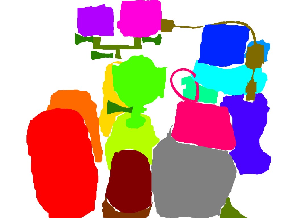 Let’s say I wanted someone to be able to click on a lens and get information about them. In this picture, these lenses overlap. Defining rectangular regions isn’t sufficient. I opened the picture in a paint program and applied color in a layer over the objects of interest. Each color is associated with a different object classification. Image editing isn’t my skill though. The result looks rough, but sufficient. This second image will be used in an HTML page to figure out which object that someone has clicked on. I’ll have a mapping of these color codes to objects.