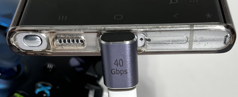Both iOS and Android support game controllers. On iOS, you only need to pair the controller with the phone using the Bluetooth settings. On Android, you can either pair through the Bluetooth settings or you can connect it to the phone with a USB cable. I preferred this method so that I did not have to unpair the controller with the other device with which I use it. Recent Xbox controllers use USB-C as their connector. If you have an older controller, it uses USB-micro. You’ll need a USB-C to USB-micro cable. I preferred to use the shortest cable possible. I also use a USB-C right angle adapter to keep the cable a little neater.