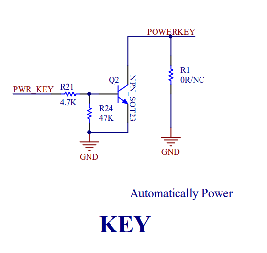 The end of the circuit labeled POWERKEY is connected to the SIMCOM 7600’s line of the same label. According to the SIMCOM 7600 documentation, connecting the power line to ground will power the unit on. (the POWERKEY line is connected to positive 1.8V internally within the SIMCOM 7600). The end result of this circuit could almost be viewed as being like an inverter; the high voltage from D6 or PWR results in the POWERKEY pin connecting to ground (low signal) and powering on. Sending a low signal to PWR causes the POWERKEY to be driven high by it’s internal resistor, which powers the SIMCOM 7600X off.